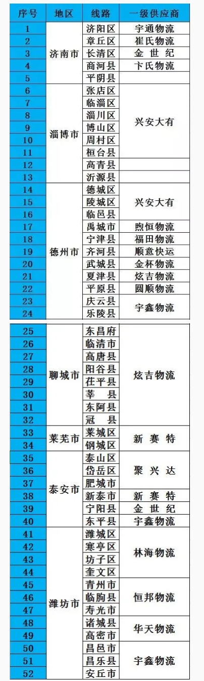 1、濟南為中心輻射山東所有地、縣級市,直達線路122條,提升服務(wù)時效的同時降低客戶的運營成本。