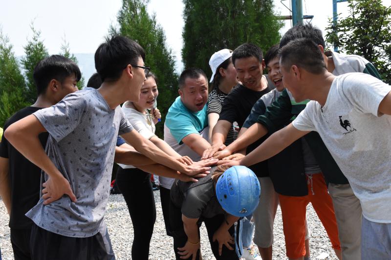 在訓練過程中,全體員工被分為三支隊伍并展開了激烈的競爭,8米的高空斷橋,真正的個人挑戰,敢于挑戰便是對自己的一大突破,只有勇 于不斷的去突破自己,才能在工作、生活中有所成長,有所改變;所有學員站在1.5高的背摔臺上背對著大家,身體筆直的倒下,由下面的伙 伴將其接住。面對這個挑戰,敢不敢將自己的后背交給隊友?敢不敢充分的相信隊友?如何去建立信任……通過訓練活動讓員工們體驗到解 決問題的方法,員工們之間面對同樣一個問題所表現出來的態度,如何達到共識,并進行配合共同解決。最終大家齊心協力在規定時間內完 成了超音速、背摔、斷橋、有軌電車、求生墻等眾多項目。