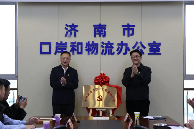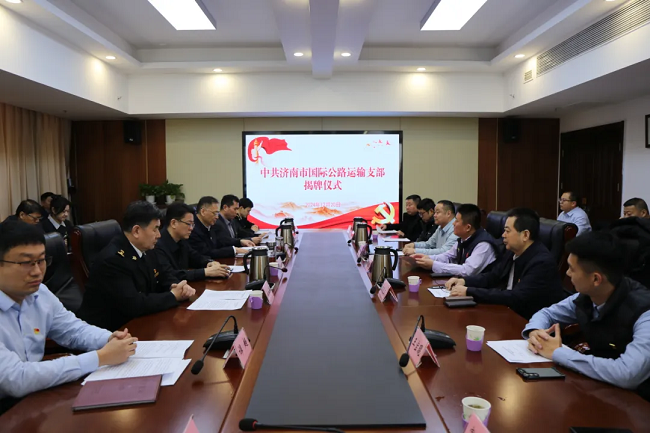 12月20日,中共濟南市國際公路運輸支部舉行揭牌儀式,中國道路運輸協會副秘書長高兮,市口岸物流辦黨組成員、副主任夏慶,泉城海關二級高級主辦肖永琪,振宇物流集團董事長張憲振、市國際公路運輸支部成員單位負責同志等出席活動。