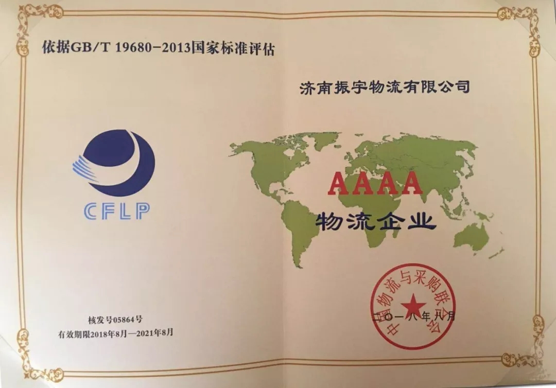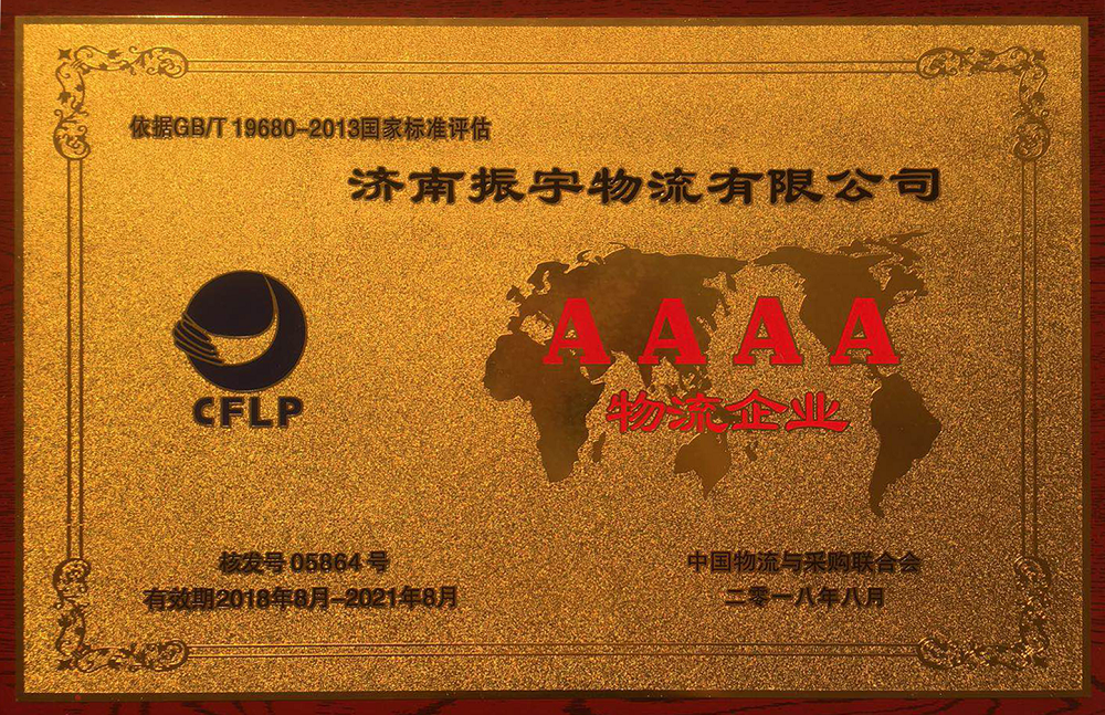 熱烈祝賀濟(jì)南振宇物流榮獲國(guó)家4A級(jí)物流企業(yè)