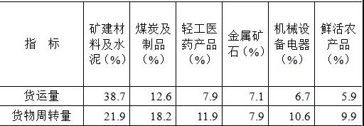 貨運量的主要貨類構成中,“礦建材料及水泥”占比最高,為38.7%;其次是“煤炭及制品”,占比12.6%;“輕工醫藥產品”“金屬礦石”“機械設備電器”“鮮活農產品”等貨類次之,占比分別為7.9%、7.1%、6.7%和5.9%。