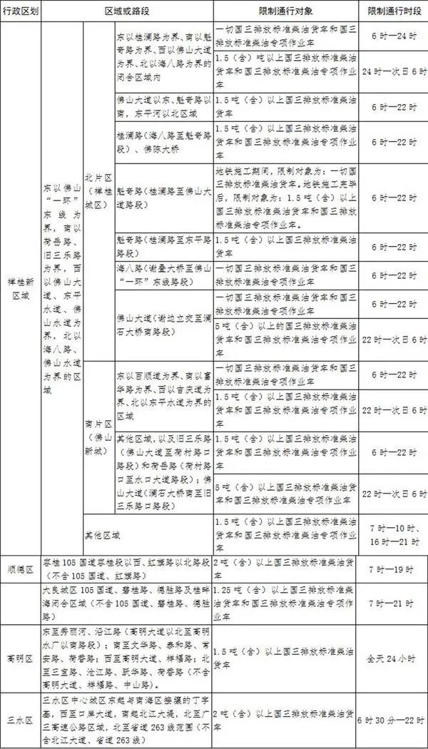 2020年7月1日起佛山實施國三排放標準柴油貨車限制通行通告,屆時公安機關交通管理部門不再向國三排放標準柴油貨車發放通行證。凡是違反通告進入限制通行區域的車輛將依法處以200元罰款并記3分。
