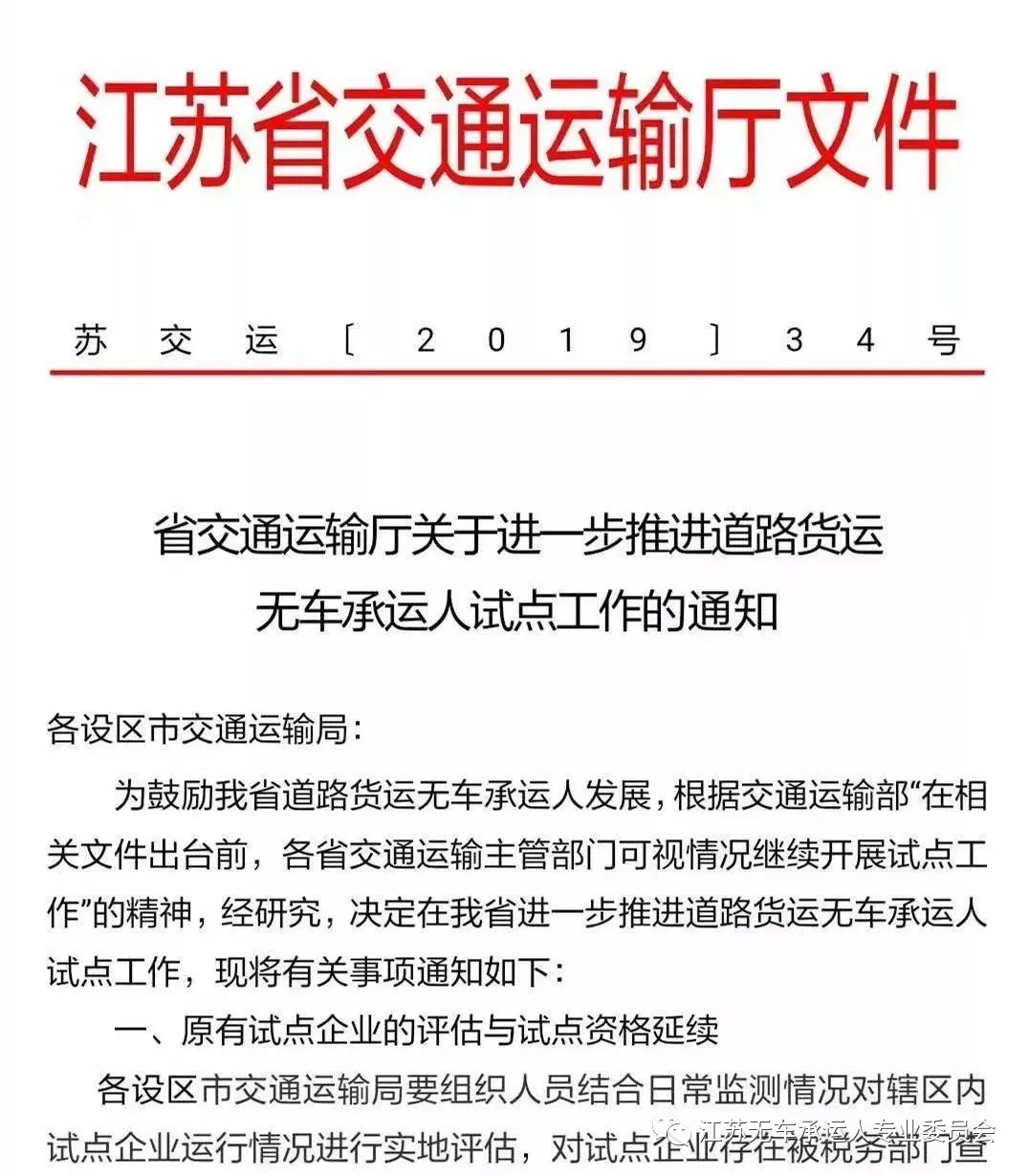 濟南物流公司:重磅!關于無車承運試點 江蘇省交通廳發文